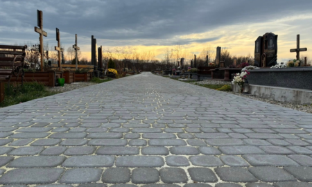 На кладовищі в мікрорайоні Опришівці облаштували дві нові алеї з бруківки та встановили вагончик для зберігання реманенту.