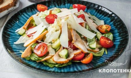 Легкий і швидкий у приготуванні салат із копченою курячою грудкою, томатами чері та айсбергом підійде як для щоденного меню, так і для...